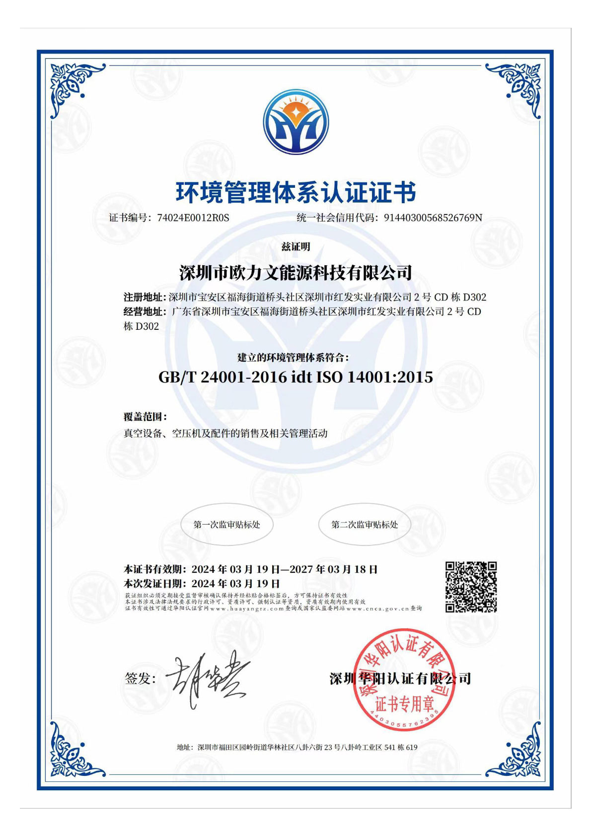 • 環(huán)境管理體系認(rèn)證證書(shū)